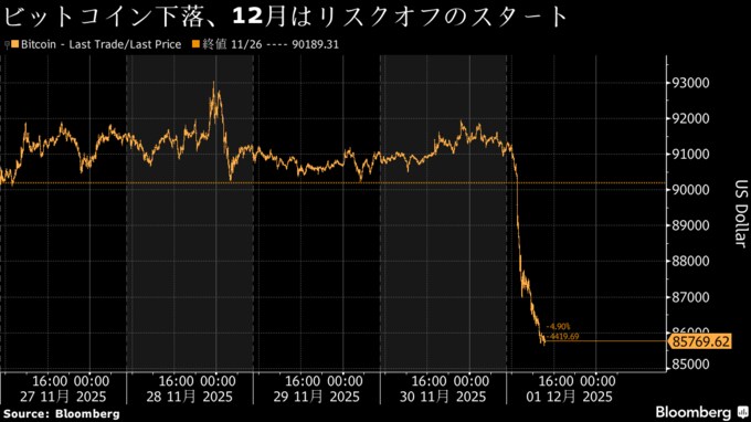 原題:Bitcoin Plunges to Below $86,000 in Risk-Off Start to December(抜粋)