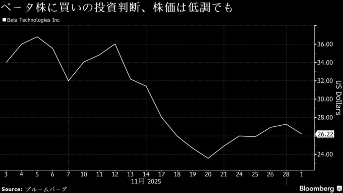 ベータを唯一「ホールド」と評価しているジェフリーズのシーラ・カヤオグル氏は同社株の動きについて、小型株と航空宇宙銘柄全般の下落が影響しているとみている。