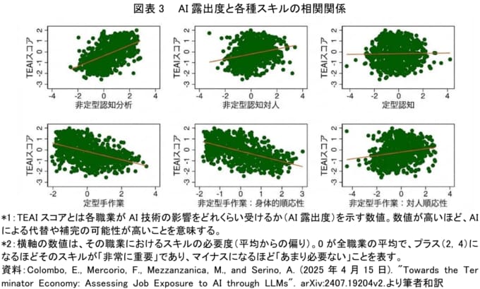 対照的に、「対人順応性」に関わる技能ではAIとの相関が薄く、数値のばらつきも多いことが確認されている。