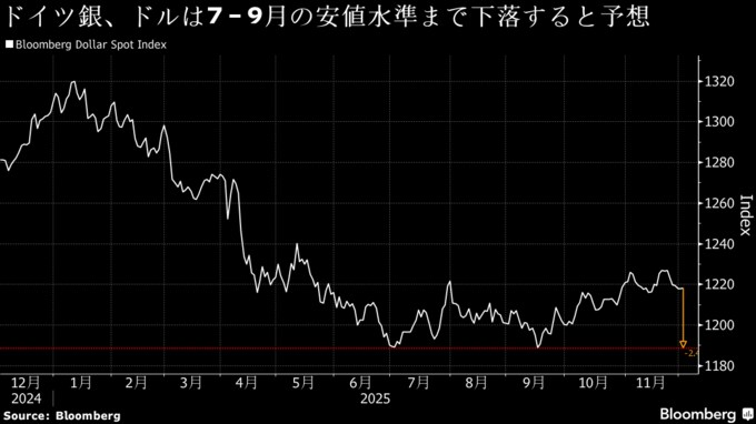 「ドルは7-9月(第3四半期)の安値水準まで下落する余地があるとみている。足元のスポット価格を約2%下回る水準だ」とベイカー氏はリポートで述べた。