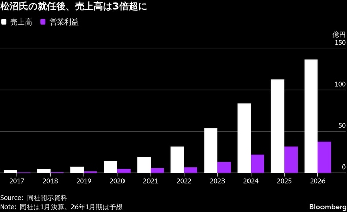 過度な在庫を抱えず値下げしないため、前期(25年1月期)の営業利益率は28%とアパレル業界では高い水準だ。売上高も約113億円と、COO就任後3年間で3倍以上になった。公開価格を基にした時価総額は717億円で、12月に入り1000億円を上回る場面もあった。