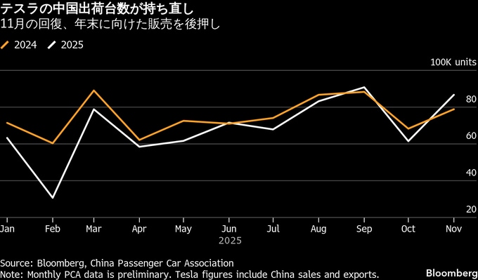 原題:Tesla China Shipments Rise for Just the Third Time This Year(抜粋)