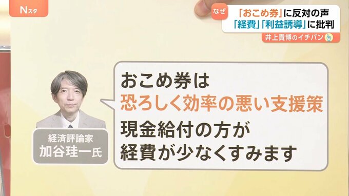 経済評論家の加谷氏は、「おこめ券は恐ろしく効率の悪い支援策。現金給付の方が経費が少なくすみます」と指摘しています。