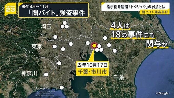 合同捜査本部は福地容疑者ら4人が市川市の事件を含め、これら18の事件にも関与したとみています。