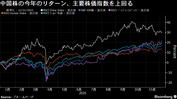 (ブルームバーグ):中国株が2025年に大幅な上昇を遂げ、世界の投資家の関心を取り戻している。人工知能(AI)分野での技術力や米中対立の中での底堅さを背景に、2026年も上昇が続くとの見方が広がる。
