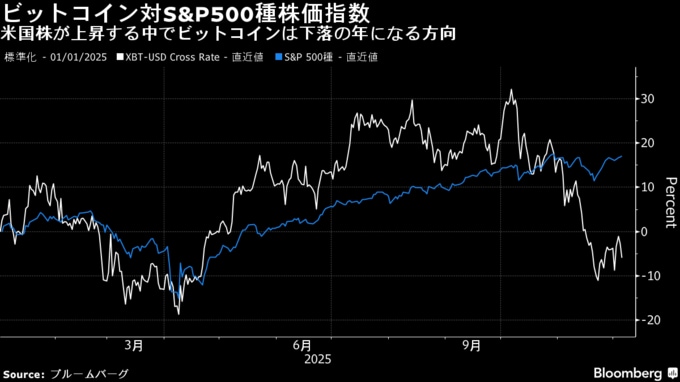 こうした相場急落でビットコインは過去10年以上で初めて、年間リターンでS&P500種株価指数を下回る見通しとなった。過去の暗号資産の冬でさえ、ビットコインが他のリスク資産からこれほど明確に乖離(かいり)することはほとんどなかった。トランプ大統領のホワイトハウスへの返り咲きを受けて規制緩和や機関投資家の参入が期待され、暗号資産が繁栄するとの見通しに逆行する動きだ。