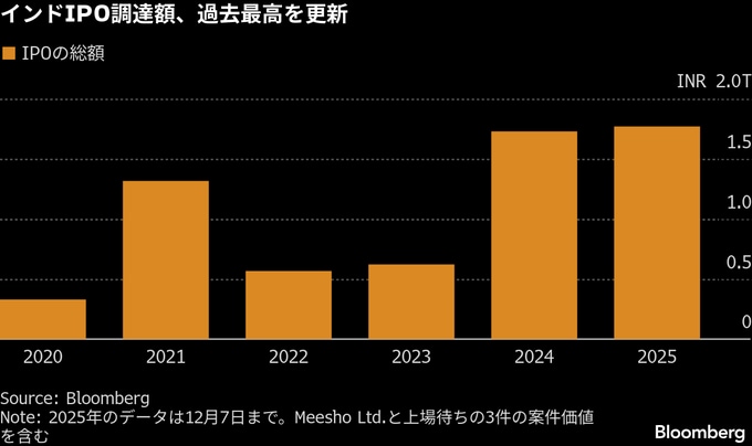 原題:India’s IPO Fundraising Hits Record as Investor Demand Swells(抜粋)