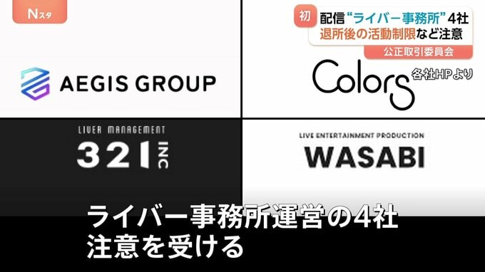 ライブ配信アプリ「Pococha」で配信しているライバーが所属する事務所と結んだ契約で活動を制限されていたとして、公正取引委員会が事業者に注意を行いました。注意を受けたのは、ライバー事務所を運営する、▼AEGI…