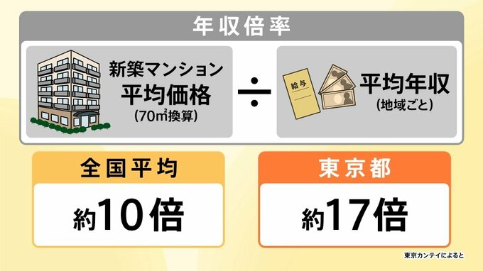 新築マンション平均価格(70㎡換算)÷平均年収(地域ごと)