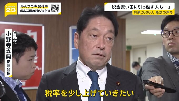 「富裕層だけ上がるとなると、税金が安い国に引っ越した方がいいんじゃないか。今はインターネットでビジネスをされている方もたくさんいると思う。そういう方が海外に住んでしまうと、日本に税金が全く入らないことにも繋がると思う」