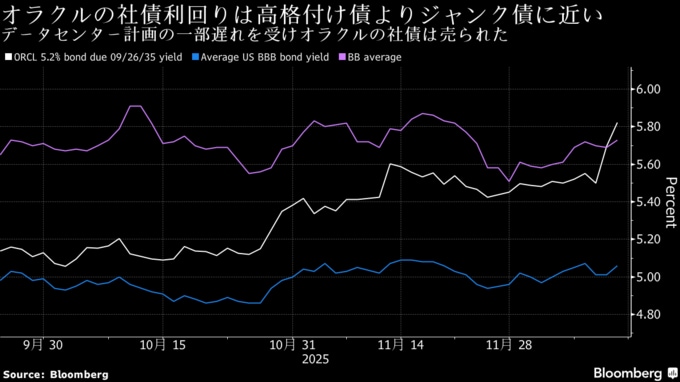 (ブルームバーグ):米IT大手オラクルが新たに発行した投資適格債の価格は、先週の9-11月(第2四半期)決算発表後に下落が続き、ジャンク(投機的格付け)債に近い水準まで利回りが上昇した。