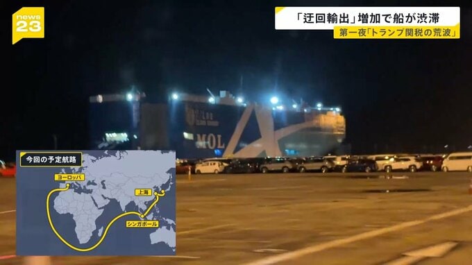 トランプ関税の影響で、“迂回輸出”が増加。積み下ろしや燃料補給を待つ船の“渋滞”が起きていました。