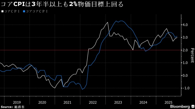 ブルームバーグがエコノミスト50人を対象に行った調査では、23年4月の植田和男総裁の就任後で初めて、全員が利上げを予想した。その後の利上げペースについては、最多の64%が半年に1回程度とみており、米関税政策の導入前の市場想定に回帰するとの見方が多い。