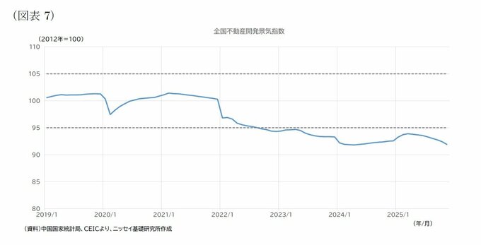 不動産開発景気指数は91.9と、前月の92.42から低下した。