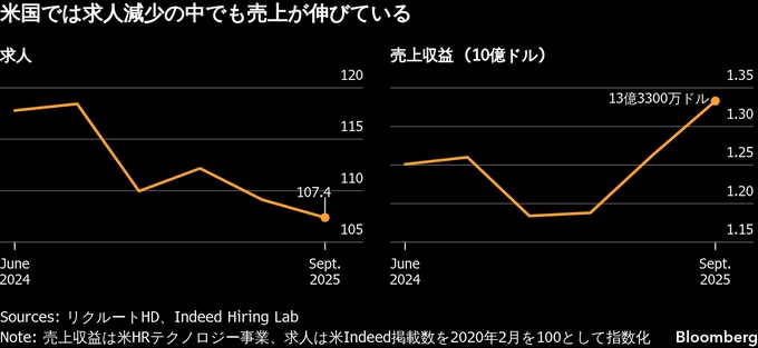 企業はインディードに無料で求人広告を掲載できるが、より条件に合う求職者に届きやすくするための有料サービスもある。採用の効率化を促す戦略は奏功しており、求人数が減る中でも売上収益が上昇。11月には2026年3月期の業績を上方修正した。