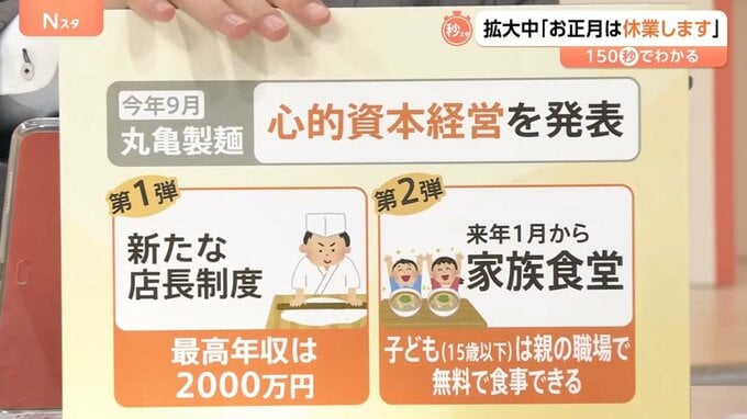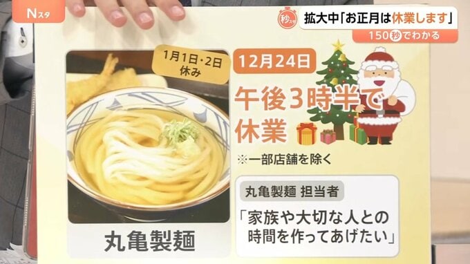 丸亀製麺の担当者は「家族や大切な人との時間を作ってあげたい」と、従業員への思いを話してくれました。