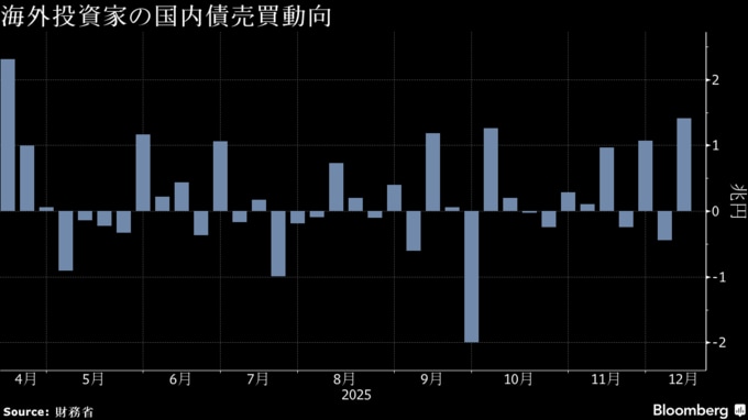 (ブルームバーグ):利回りの上昇を背景に、12月第2週の国内債券への海外資金の流入が8カ月ぶりの高水準となった。