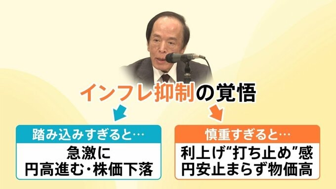 一方で、それを気にしてあまりに慎重になりすぎると、市場から「利上げはこれで打ち止めだ」と見られてしまい、さらに円安が止まらなくなって物価高に繋がってしまいます。