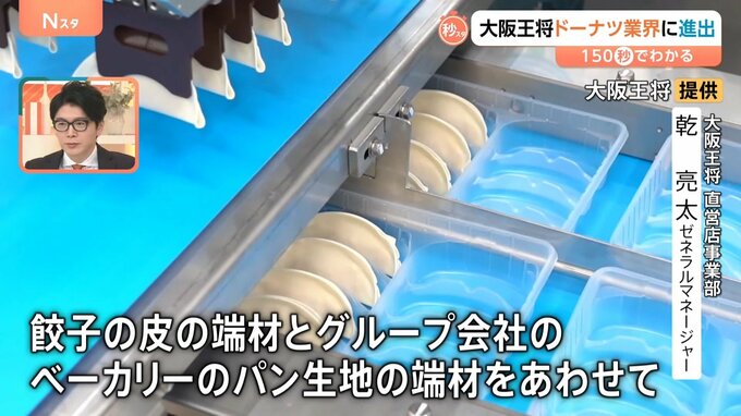 「餃子の皮を工場で作る段階で端材が出てしまいます。餃子の皮の端材とグループ会社のベーカリーのパン生地の端材をあわせて、今回ドーナツを作ることになりました」