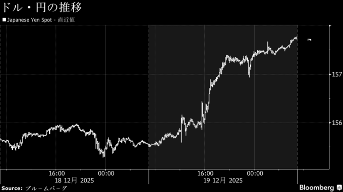 (ブルームバーグ):22日朝の外国為替市場で円は対ドルで157円台後半と約1カ月ぶりの安値圏で推移。前週末の日本銀行の金融政策決定会合を受けて利上げ継続への期待が後退し、円売りが優勢となっている。財政拡大への懸念も円の上値を抑えている。