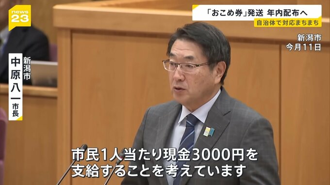 新潟市は事業者への手数料がかかることや、農家から直接米を調達する人もいる現状を踏まえ、現金給付を選択。