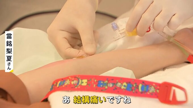 腕の血管にうまく針が入らないという予想外の事態にみまわれ、何度かやり直すことに。