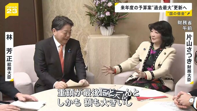 歳入についてはインフレの影響で、所得税や消費税などの税収が増える見込みです。それでも不足分は大きく、国の借金「国債」の発行額は29兆6000億円程度で、2025年度を上回る見通しです。