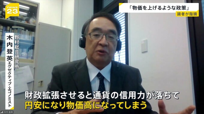 「財政拡張させると、通貨の信用力が落ちて円安になり物価高になってしまう。『物価高対策が最も重要だ』という説明をしながら、実は物価を上げるような政策をしてしまっているのが一種の矛盾。高市政権の経済政策の矛盾でもある」