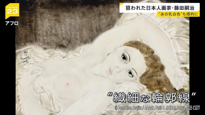 藤田の「繊細な輪郭線」。そして「グラン・フォン・ブラン」=“素晴らしき乳白色”とも称された色使いは、パリの人々に大きな衝撃を与えた。