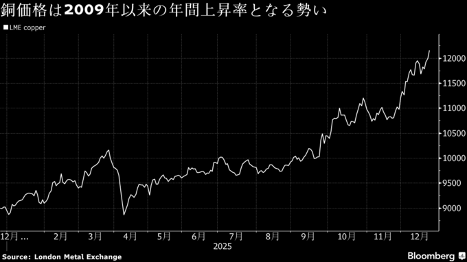 原題:Copper Poised for Best Year Since 2009 After December Surge(抜粋)