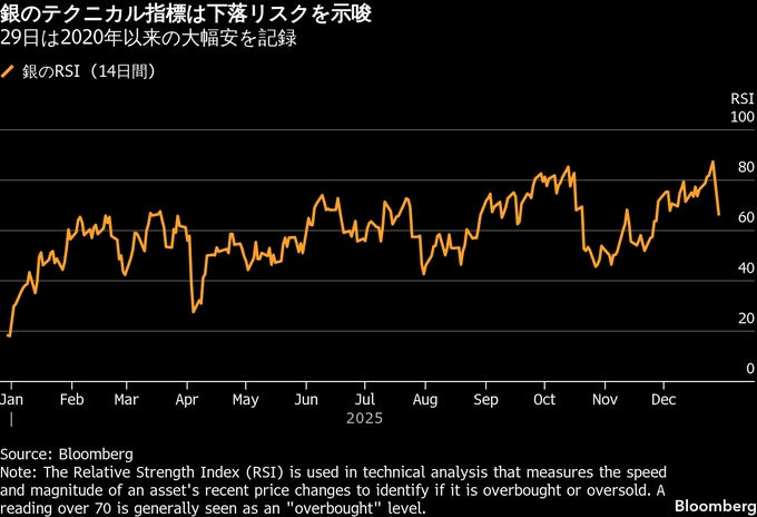 ペッパーストーン・グループのストラテジスト、ディリン・ウー氏は、売りは主に「テクニカルな要因によるものだ。足元の貴金属価格高騰を受けた早期の利益確定や、レバレッジをかけたロングポジションの巻き戻し、証拠金要件の厳格化が圧力となった」と指摘。「ファンダメンタルズは変わっていない」と述べた。