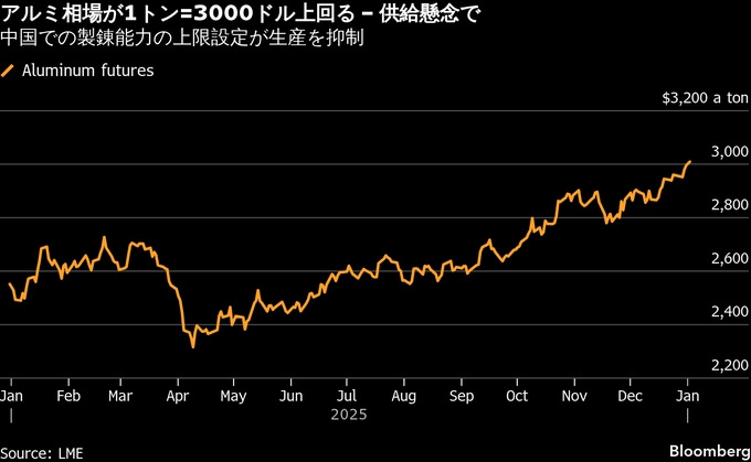原題:Aluminum Hits $3,000 for First Time Since 2022 on Supply Concern(抜粋)