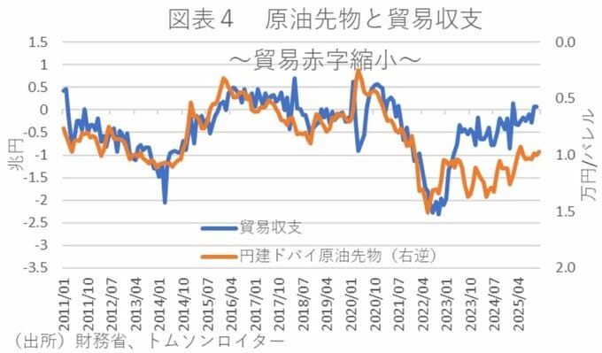 他方、円安の一因とされていた日本の貿易赤字も、一次産品の輸入価格が下落していること等から縮小に向かっている。