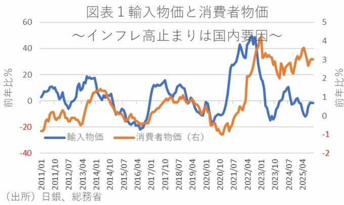 ただ、日本のエネルギーや食糧自給率は構造的に低いことからすれば、引き続き為替の動向も2026年の物価を大きく左右しよう。