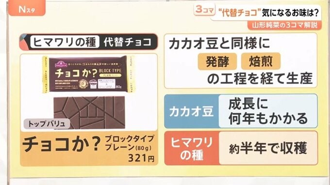 街では早くもバレンタイン商戦がスタート。カカオ不足でチョコレートの価格が値上がりする中、カカオを全く使わないいわゆる“代替チョコ”が続々登場しています。どんな食材が原料に?そして気になるお味は?
