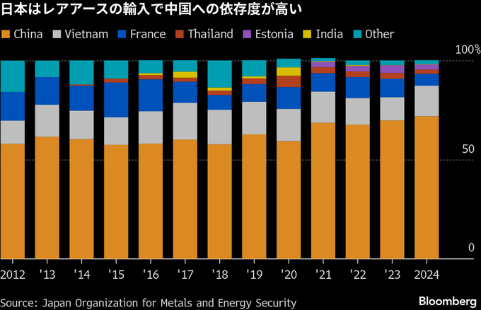 中国政府は今週、防衛目的で使用されるデュアルユース(軍民両用)製品の輸出を全面的に禁止した。中国の対日輸出の約40%が対象となる可能性がある。また、日本の自動車産業の基盤であるレアアースの輸出規制強化もほのめかし、東京への圧力を強めた。ジクロロシランに関する調査の発表があったのはその数時間後だ。