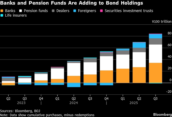 ブルームバーグが日銀買い入れや償還額を踏まえ分析した結果、26年度の市場へのネット供給額は前年度比約8%増え、約65兆円に膨らむ見込み。これは過去10年余りで最大だ。金利上昇で国債の利払い費はかさむものの、経済成長を優先する高市政権は過去最大の来年度予算案を決定。一方、日銀は国債保有額を減らしており、民間投資家が消化しなければならない分は増える方向にある。