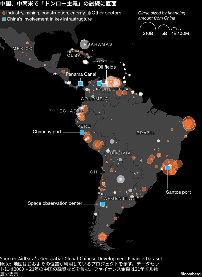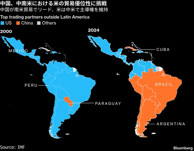 米調査会社ロジウム・グループのデータによると、中国は中南米への投資も積極的に進めており、直接投資プロジェクトは25年第3四半期までに1800億ドルを突破した。ブルームバーグ・エコノミクスの調査によれば、今世紀に入って以降、中南米33カ国のうち14カ国で中国の経済的な影響力が米国を上回っている。この間、ホンジュラスやニカラグアなどが外交関係を台湾から中国に切り替えた。