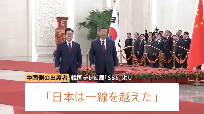 日中関係が悪化している中、今週行われた中国と韓国の首脳会談で、中国側が「日本は一線を越えた」との認識を示していたと韓国メディアが伝えました。