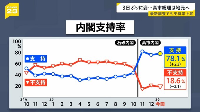 高市内閣を「支持できる」という人は、12月の調査より2.3ポイント上昇し、78.1%でした。