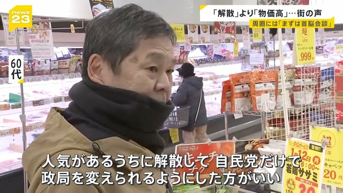 「物価を安くしてもらえればありがたいなと思うが。人気があるうちに解散して、自民党だけで政局を変えられるようにした方がいい」