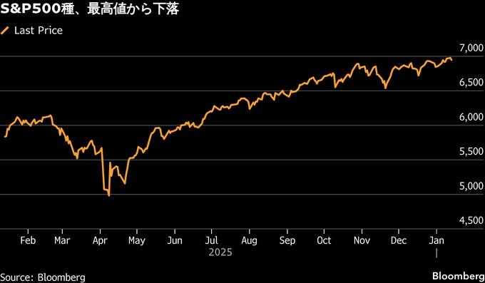 S&P500種株価指数は最高値から下落。JPモルガンは4.2%安。同行の2025年10-12月(第4四半期)決算では、投資銀行業務の手数料収入が予想に反して減少し、先月示した自社ガイダンスを下回った。