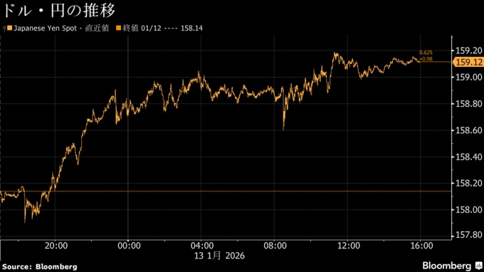 (ブルームバーグ):外国為替市場で、円は対ドルで下落。一時0.7%安の1ドル=159円19銭と、2024年7月以来の安値となった。 高市早苗首相が23日召集予定の通常国会冒頭で衆議院を解散する意向を自民党幹部に伝達したとの報道が引き続き影響した。