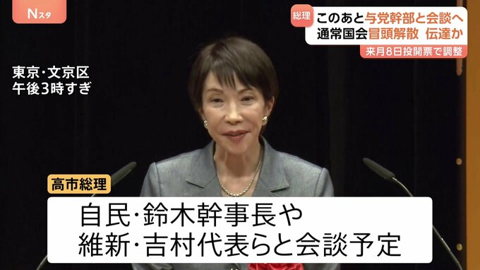 【速報】高市総理が与党幹部と会談 通常国会の“冒頭解散”の意向を伝達か 維新・藤田共同代表も同席 与野党とも準備加速