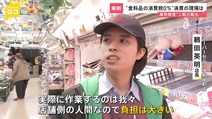 「スーパーなどが安くなると、そちらに行ってしまう可能性ある。食品だけの消費税減税というのは、店にとってはマイナスになる」