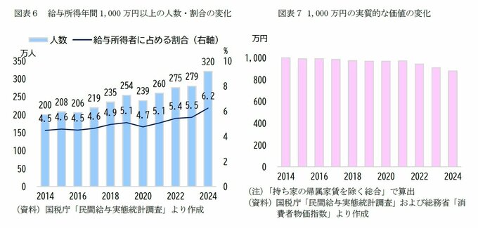 もっとも、物価上昇の影響により、1,000万円の実質的な価値は10年前と比べて1割以上縮小している点には留意が必要である。