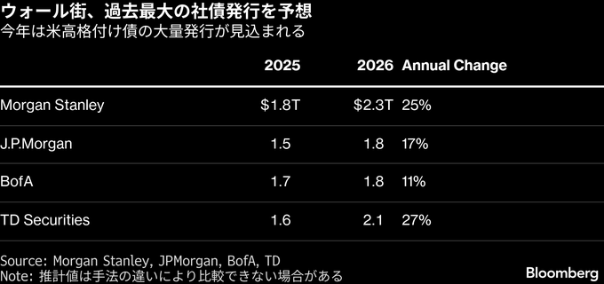 (ブルームバーグ):米投資会社ダブルライン・キャピタルは、割高な評価を受けた企業が人工知能(AI)分野への投資や買収資金を確保するため過去最高規模の借り入れに動きつつあり、すでに過熱気味の市場が一段と危うさを増していることを警戒し、社債の購入を控える方針だ。