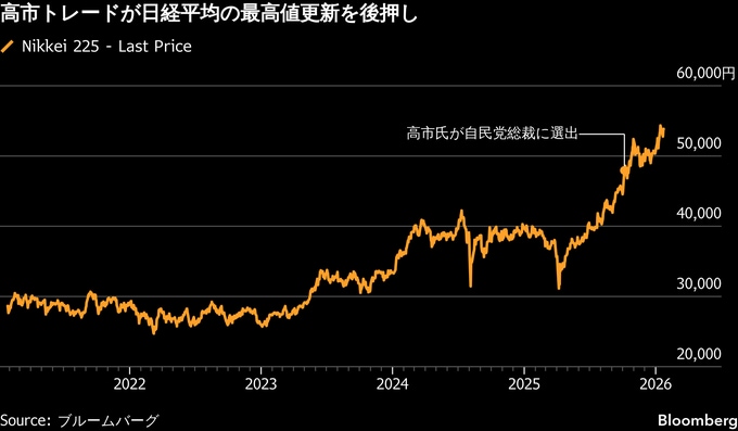 現時点で市場関係者の多くは、高市首相が2月8日投開票の衆院選で政権基盤の強化に成功し、経済成長に向けた景気刺激策を推し進めると予想。株高・債券安(金利高)・円安になる「高市トレード」が続くとみている。