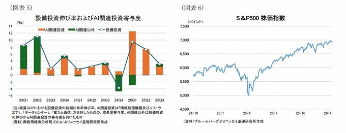 (AI関連投資と資産効果)AI投資が設備投資を牽引、株高が消費を下支え