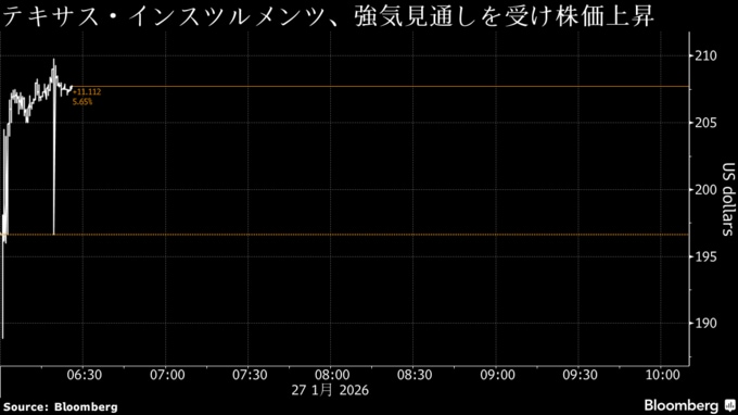 強気見通しは、顧客側の在庫調整が進展し、再発注の動きが始まったことを示唆する。これを受け、TI株は時間外取引で約5%上昇した。27日終値は196.63ドルで、年初来で13%高となっている。